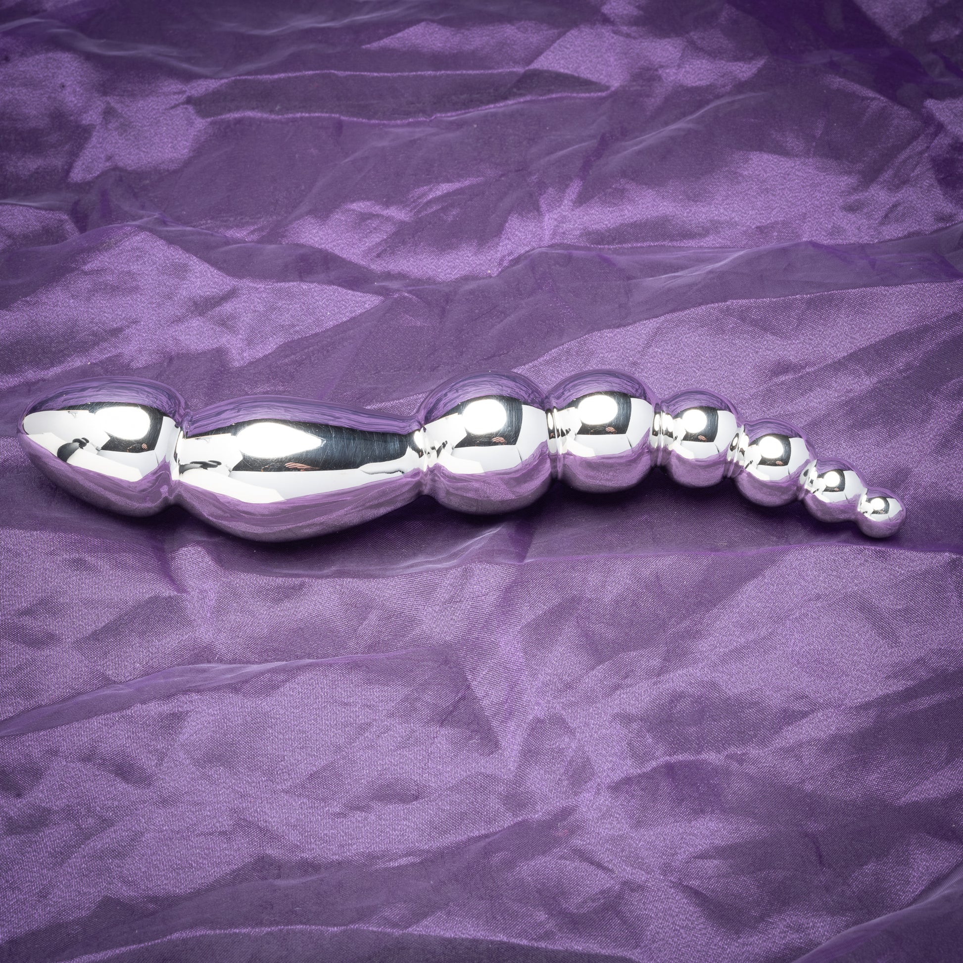 Seductively sinuous and powerfully playful, the Dark Desires Grando Rattle Snake is crafted to echo the hypnotic allure of a serpent’s tail. Forged from polished stainless steel, this wand features six smooth, beaded balls that gradually increase in size along a slender shaft, ending in a bold bulbous head for a deep, satisfying finish.