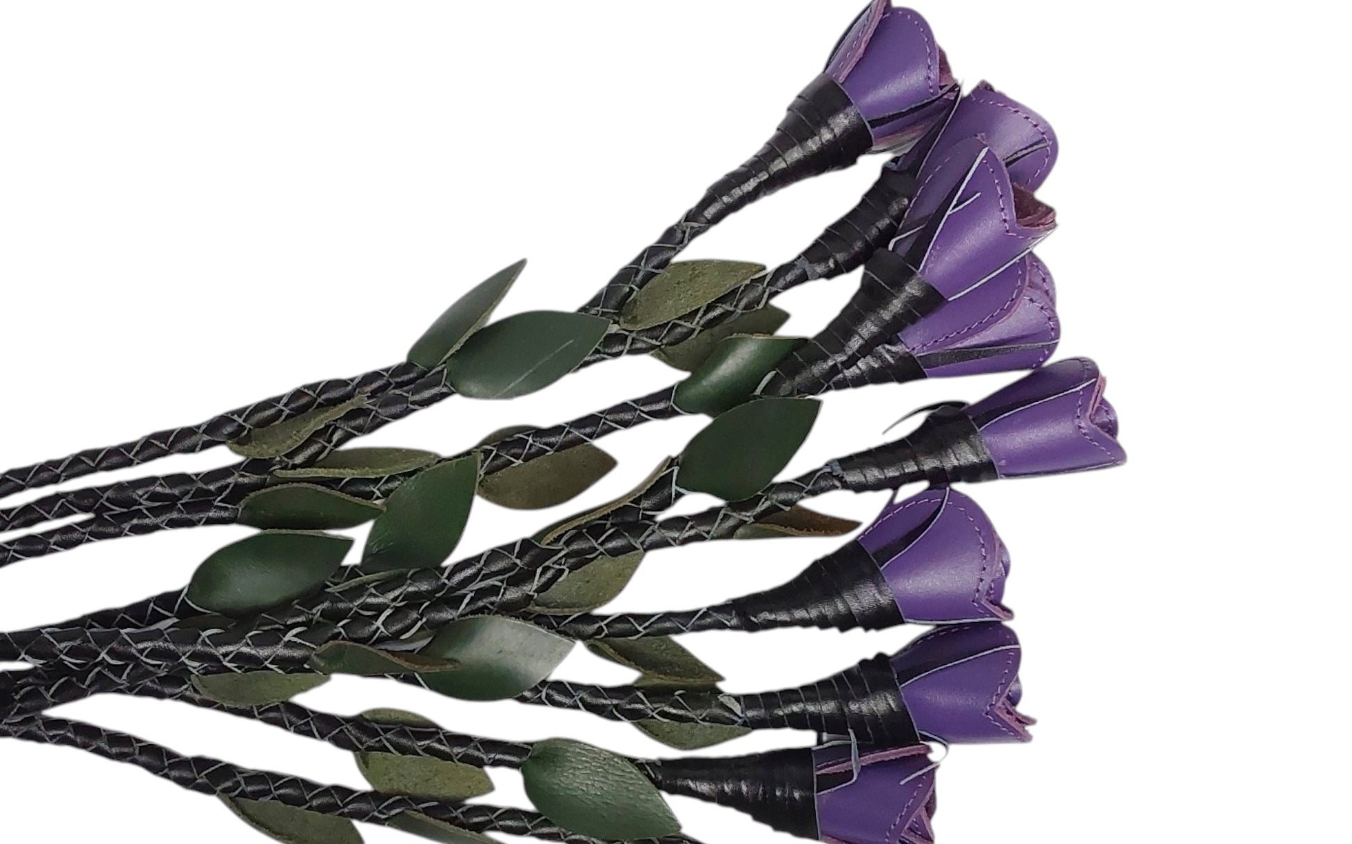 Hand Made, 100% Leather Purple (Vibrant ) Rose Splay Floggers Double Sided,Stitched Edges