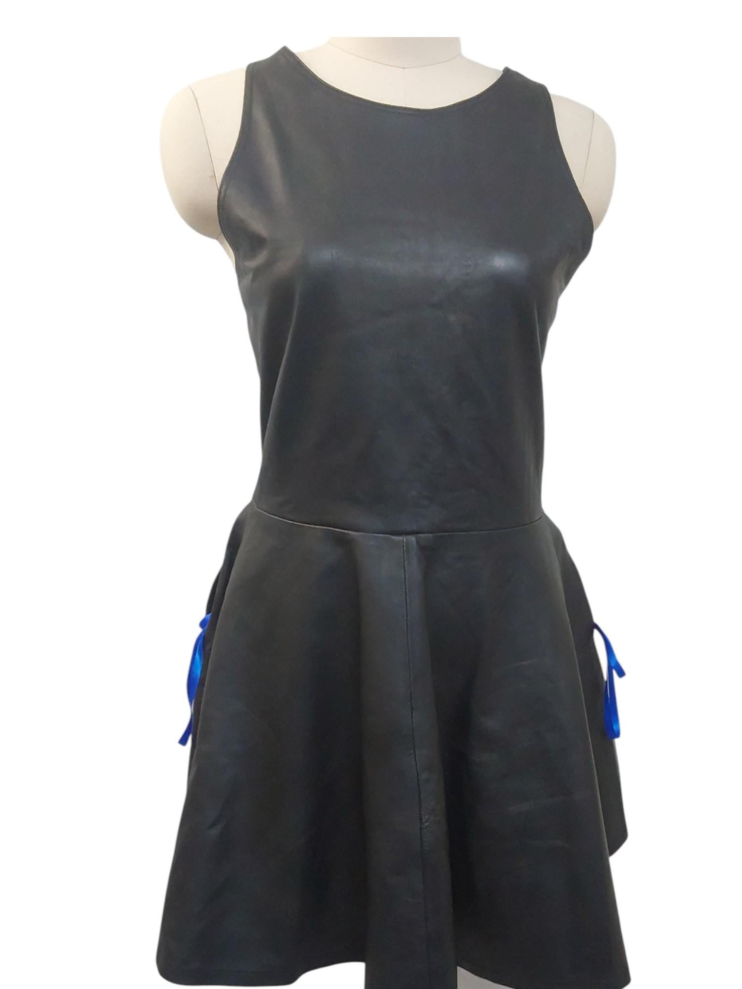 Handmade Black Lamb Leather Reversible Dress – Underbust Corset Pinafore, Round/Square Neck