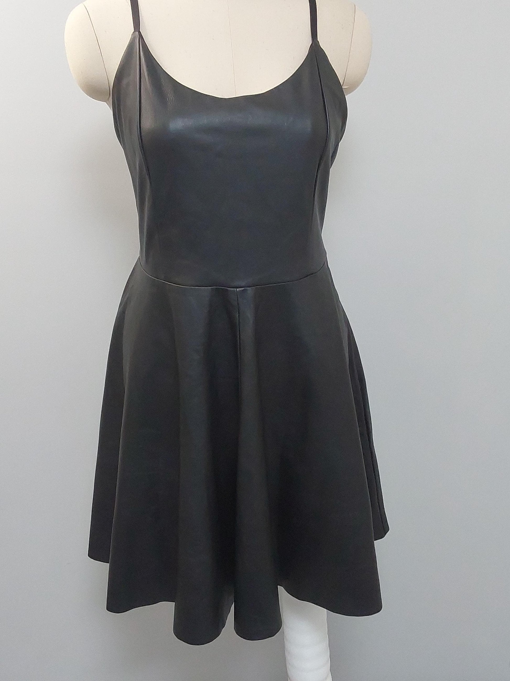 Handmade Black Lamb Leather X-Back Dress – Knee Length, Lined Bodice, Adjustable Straps